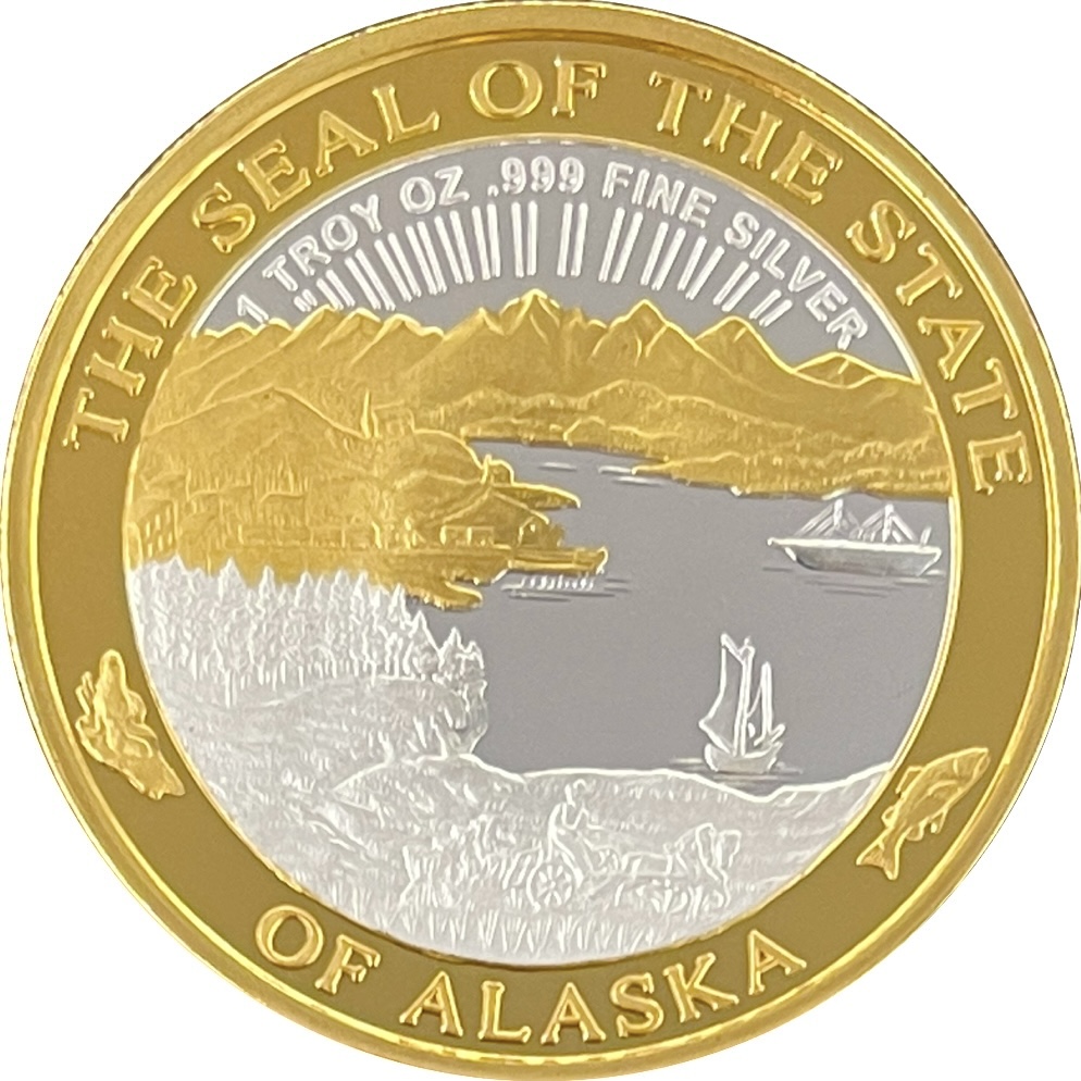 In the mid-1980’s I introduced the idea of an Official State Medallion to my State Representative, someone in Fairbanks was doing the same thing and in 1989 the Official Alaska State Medallion project was written into law. Each year there is a design contest for Alaska residents to design the obverse of the medallion, the Seal of the State of Alaska is always used on the reverse. A company in Anchorage called Alaska Precious Metals won the first contract from 1989 thru 1991, having the coins struck at a private mint in Oregon. In 1992 we were awarded the contract and the coins have been struck at our facility in downtown Anchorage ever since. At that time our company name was The Anchorage Mint, a few years later we changed our name to Alaska Mint.