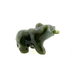 These cute little jade carvings of bear with salmon are available in 3 sizes, 1, 1.25, and 1.5 inches long. Perfect for your miniatures collection and curios cabinet. The jade is mined in British Columbia and sent overseas to be carved.