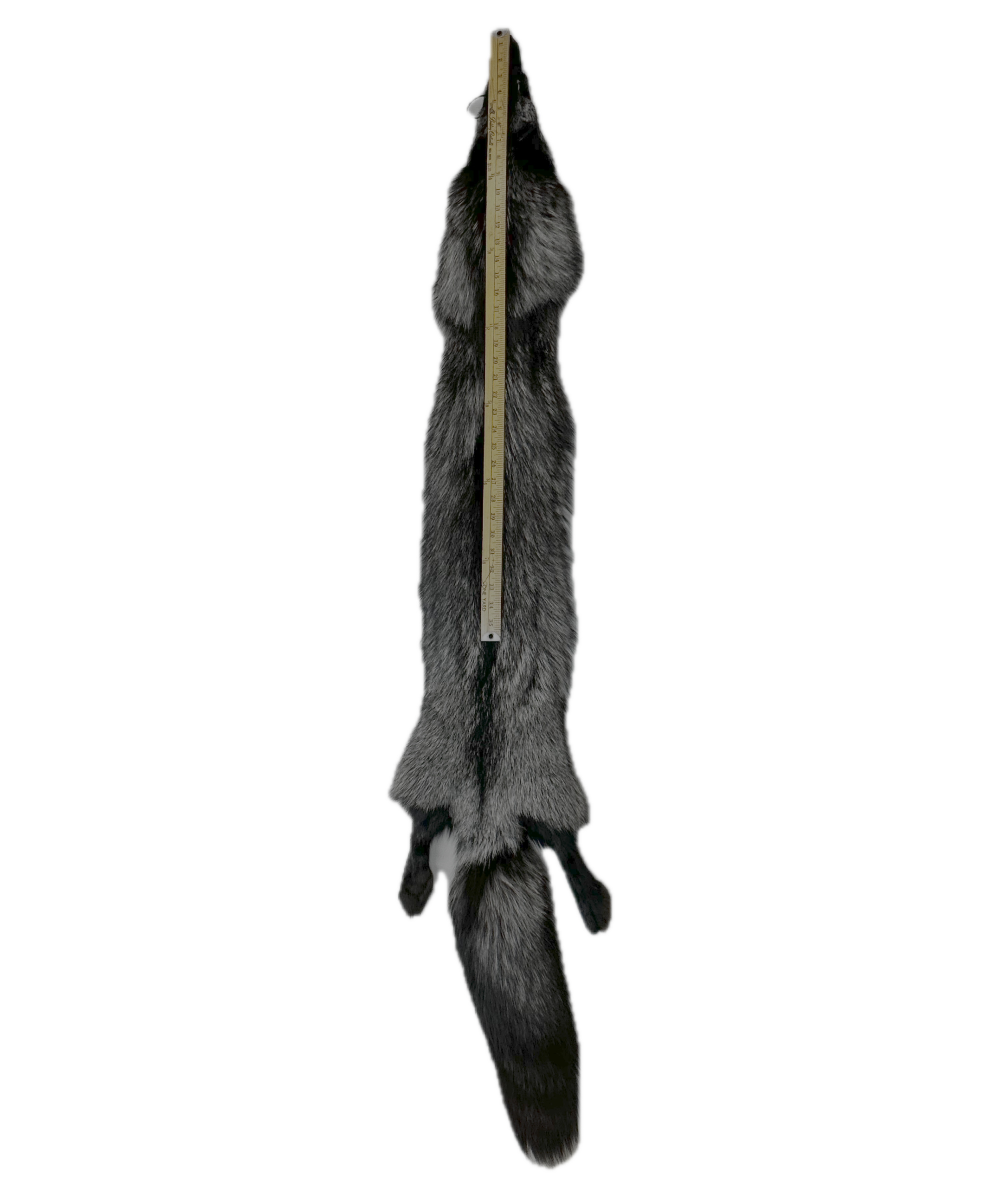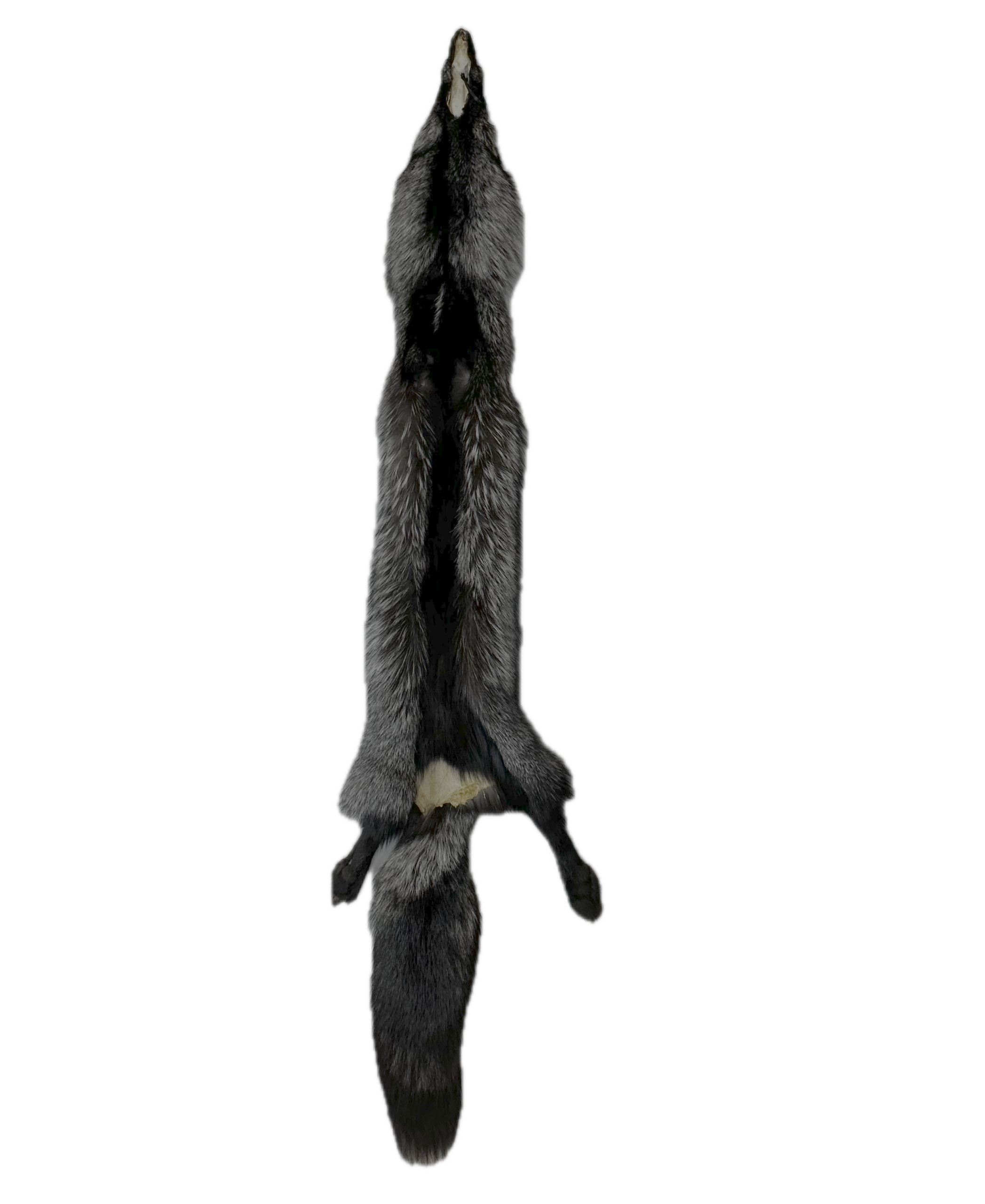 Silver fox fur comes from a melanistic color variation of the red fox, characterized by a gorgeous, dense black to blueish grey coat with silver banded hairs.
