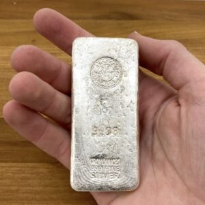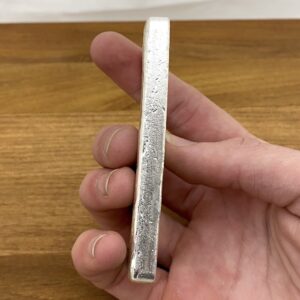 This is our largest hand-poured silver bar, it features a nice classic design, stamped with our iconic logo, fineness and weight. This bar weighs approximately 10 oz. of pure silver.