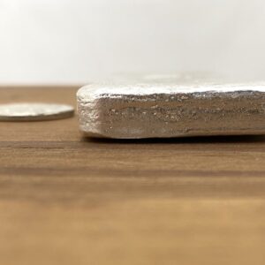 When we mint our medallions, if they have flaws that don’t pass our quality control standard, we melt them down and pour them into different shaped bars. This is our fun way of recycling, we get to turn something flawed into a piece of art.