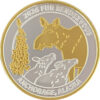 This medallion is available in golden bronze, 1 oz .999 fine silver, 1 oz single gold relief (24k plating on front of the silver coin) and 1 oz double gold relief (24k gold plating on both sides). The 1 oz medallion is similar in size to a silver dollar. They are packaged in an airtight container and handsome gift box. The reverse is the Official logo of Iditarod.