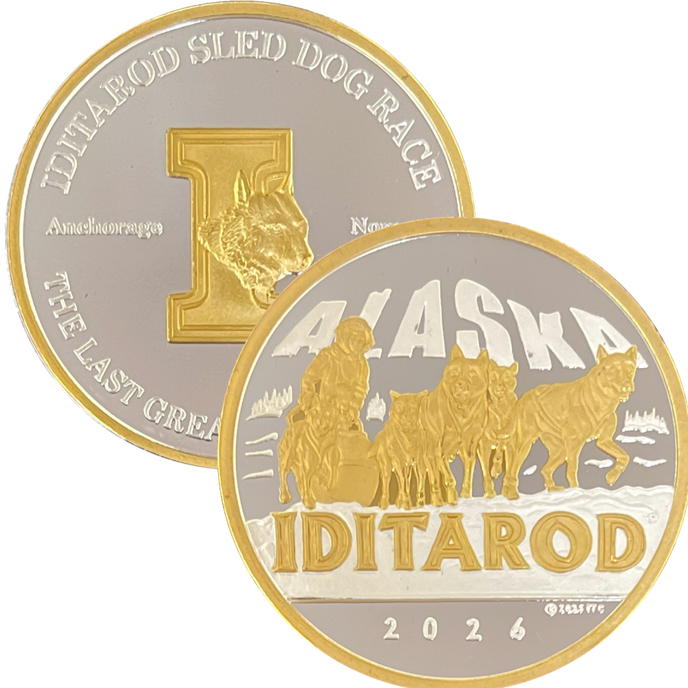 2026 is the 54th running of the Iditarod sled dog race. The Last Great Race On Earth is how the 1049 mile Iditarod sled dog race is known. Stretching from Anchorage to Nome, this race is one of the most grueling events in the world. Following the historic trail that in 1925 was used by dog teams to bring 300,000 units of life-saving diphtheria serum to an epidemic in Nome. These medallions are limited and come in a variety of sizes and metal combinations. Nice to collect or use as interesting jewelry. A donation from the sale of each medallion is made to the Iditarod committee to help bring back the race year after year.