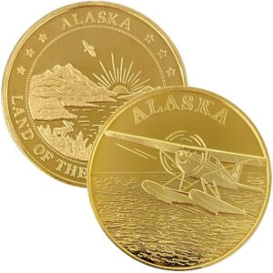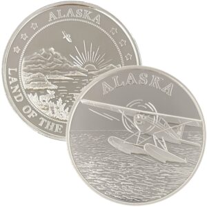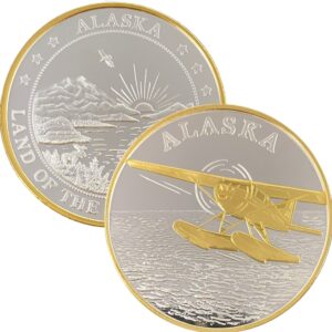 This medallion is available in golden bronze, 1 ounce .999 fine silver, 1 oz single gold relief (24k plating on the front of the silver coin) and 1 oz double gold relief (24k gold plating on both sides). It is similar in size to a silver dollar and comes packaged in an airtight container and handsome gift box. The reverse features our popular “Land of the Midnight Sun” design.