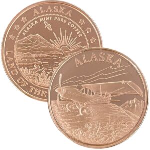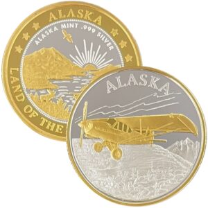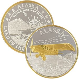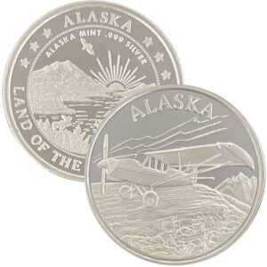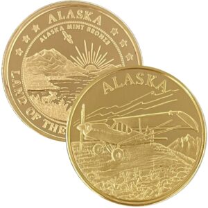 It is available in pure copper, golden bronze, 1 ounce .999 fine silver, 1 oz single gold relief (24k plating on part of the silver coin) and 1 oz double gold relief (24k gold plating on both sides). It is similar in size to a silver dollar and is packaged in an airtight container and handsome gift box. The reverse features our popular “Land of the Midnight Sun” design.