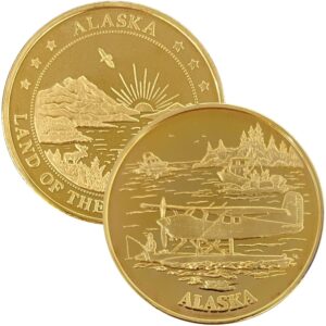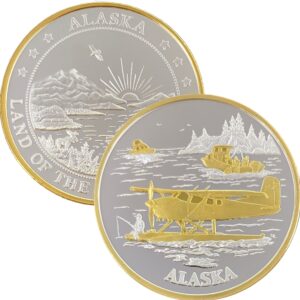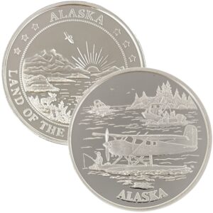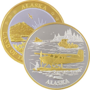 This medallion is available in golden bronze, 1 ounce .999 fine silver, 1 oz single gold relief (24k plating on the front of the silver coin) and 1 oz double gold relief (24k gold plating on both sides). It is similar in size to a silver dollar and comes packaged in an airtight container and handsome gift box. The reverse features our popular “Land of the Midnight Sun” design.