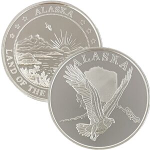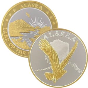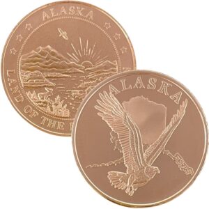 This medallion is available in pure copper, golden bronze, 1 oz .999 fine silver, 1 oz single gold relief (24k plating on the front of the silver coin) and 1 oz double gold relief (24k gold plating on both sides). The 1 oz medallion is similar in size to a silver dollar. They are packaged in an airtight container and handsome gift box. The reverse features our Land of the Midnight Sun design.