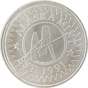 For people that like to collect or “stack” silver, this is our Alaskan Trade Unit, 1 oz. silver bullion coin, our lowest price rounds. They are made of pure silver and sell for a few dollars above the market price of silver. They come packaged in a clear plastic flip.