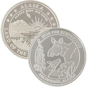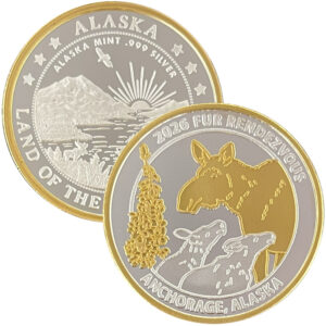 Each year we mint the Official Fur Rondy Collector Button design into our medallions. Since 1986 we have minted the Official Anchorage Fur Rondy design in golden bronze, silver, and sometimes even pure gold medallions. The silver and gold relief medallions are limited to a maximum mintage of only 2500 combined. Only in Anchorage, Alaska can competitors square off in outhouse races, create massive and complex snow sculptures, and dash to keep clear of reindeer on 4th ave. These are just a few of the fun events to compete in during the Fur Rendezvous festival that has been going on during the month of February since 1935.