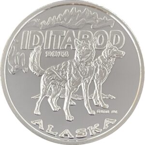 This medallion is available in 1 oz .999 fine silver and 1 oz single gold relief, 24k plating on front of the silver coin. The 1 oz medallion is similar in size to a silver dollar. They are packaged in an airtight container and handsome gift box. The reverse is the Official logo of Iditarod.