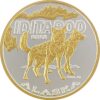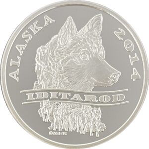 This medallion is available in 1 oz .999 fine silver and 1 oz single gold relief, 24k plating on front of the silver coin. The 1 oz medallion is similar in size to a silver dollar. They are packaged in an airtight container and handsome gift box. The reverse is the Official logo of Iditarod.