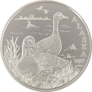 The 2007 medallion was designed by Christy Ruby of Ketchikan, Alaska. It features a Canada Goose, and has a total mintage of 4102 Proof 1 oz Silver and Gold Relief combined.