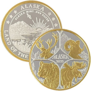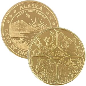 The 2025 Big Four medallion features 4 of the popular big game animals everyone visiting Alaska love to see. The Caribou, Dall Sheep, Moose and Grizzly Bear.