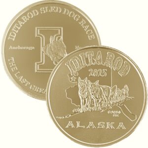 2025 is the 53rd running of the Iditarod sled dog race as well as the 100th anniversary of the original serum run to Nome. The Last Great Race On Earth is how the 1049 mile Iditarod sled dog race is known. Stretching from Anchorage to Nome, this race is one of the most grueling events in the world. Following the historic trail that in 1925 was used by dog teams to bring 300,000 units of life-saving diphtheria serum to an epidemic in Nome. These medallions are limited and come in a variety of sizes and metal combinations. Nice to collect or use as interesting jewelry. A donation from the sale of each medallion is made to the Iditarod committee to help bring back the race year after year.