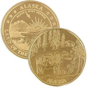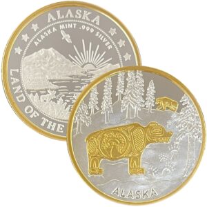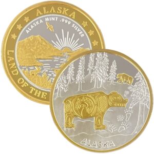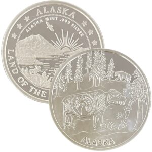 This medallion is minted in golden bronze, pure copper, 1 ounce .999 fine silver, 1 oz single gold relief (24k plating on part of the silver coin) and 1 oz double gold relief (24k gold plating on both sides). It is similar in size to a silver dollar and is packaged in an airtight container and handsome gift box. The reverse features our popular “Land of the Midnight Sun” design.