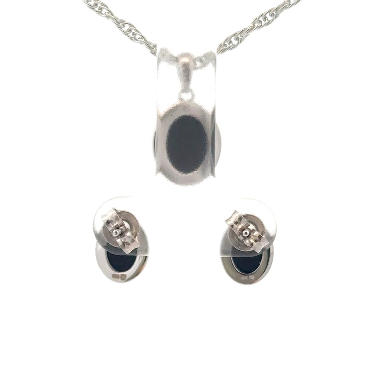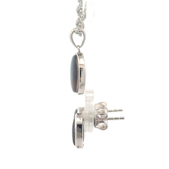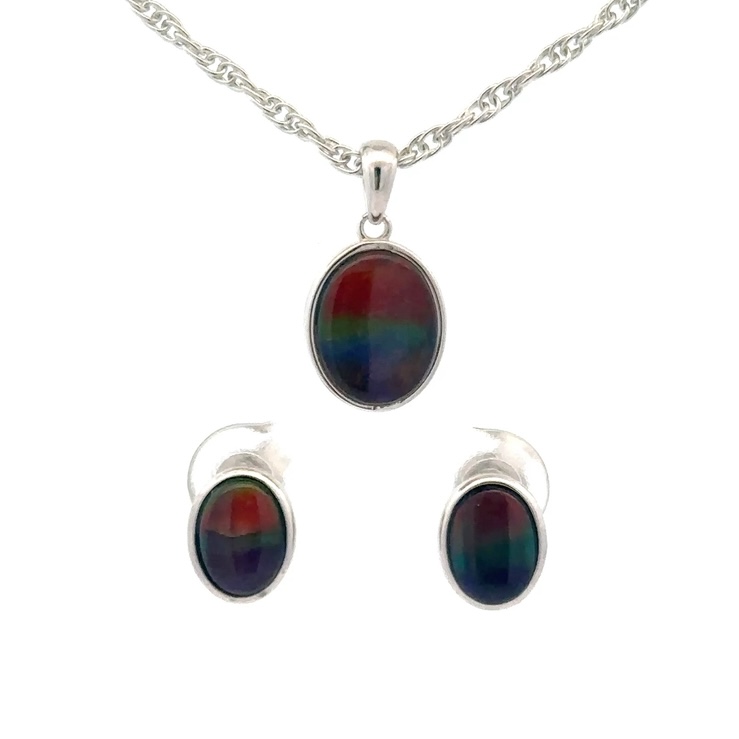 Ammolite Pendant & Earrings Oval Sterling Silver Set AMOLSSSETROUND