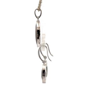 This is a small sterling silver marquise-shaped ammolite pendant with a matching set of small marquise-shaped ammolite earrings. The pendant measures 9mm wide and 26mm tall, including the bail. The earrings measure 7mm wide and 25mm tall, including the wire. Each pendant and earring is handmade, and none are exactly alike. This piece comes with a 18in display chain.