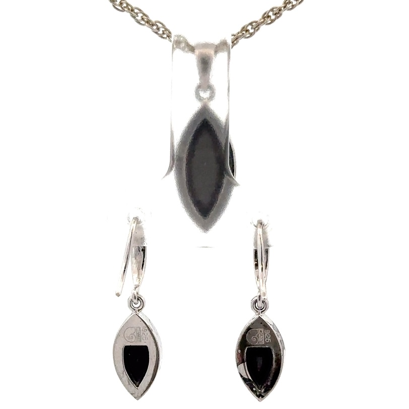 Ammolite Pendant & Earrings Sterling Silver Marquise Set AMOLSSSETDANGMARQ