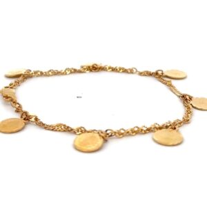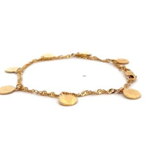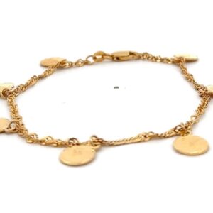 Check out this beautiful estate bracelet featuring a tiny gold replica Morgans. This bracelet is 7″ long and weighs 5 grams.