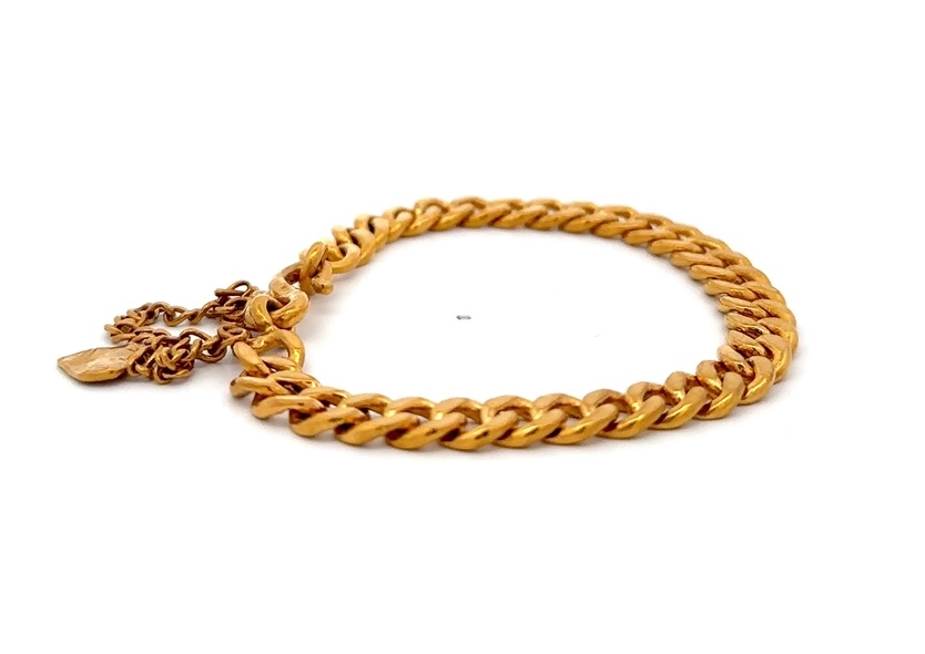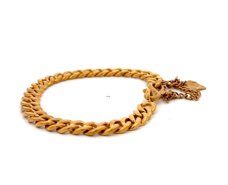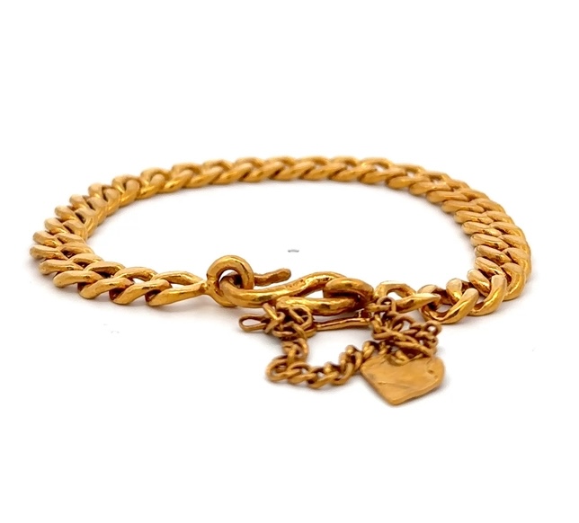 Check out this beautiful estate 24k bracelet featuring a heart & key charm. This bracelet is 7″ long and weighs 30.7 grams.