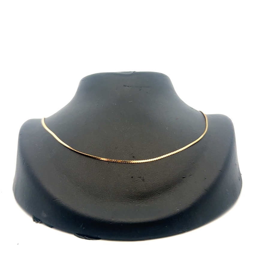 This estate chain measures 16 inches long. It is 14k gold & weighs 1.5 grams. This piece features an O-ring clasp.