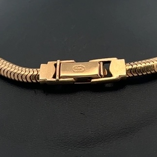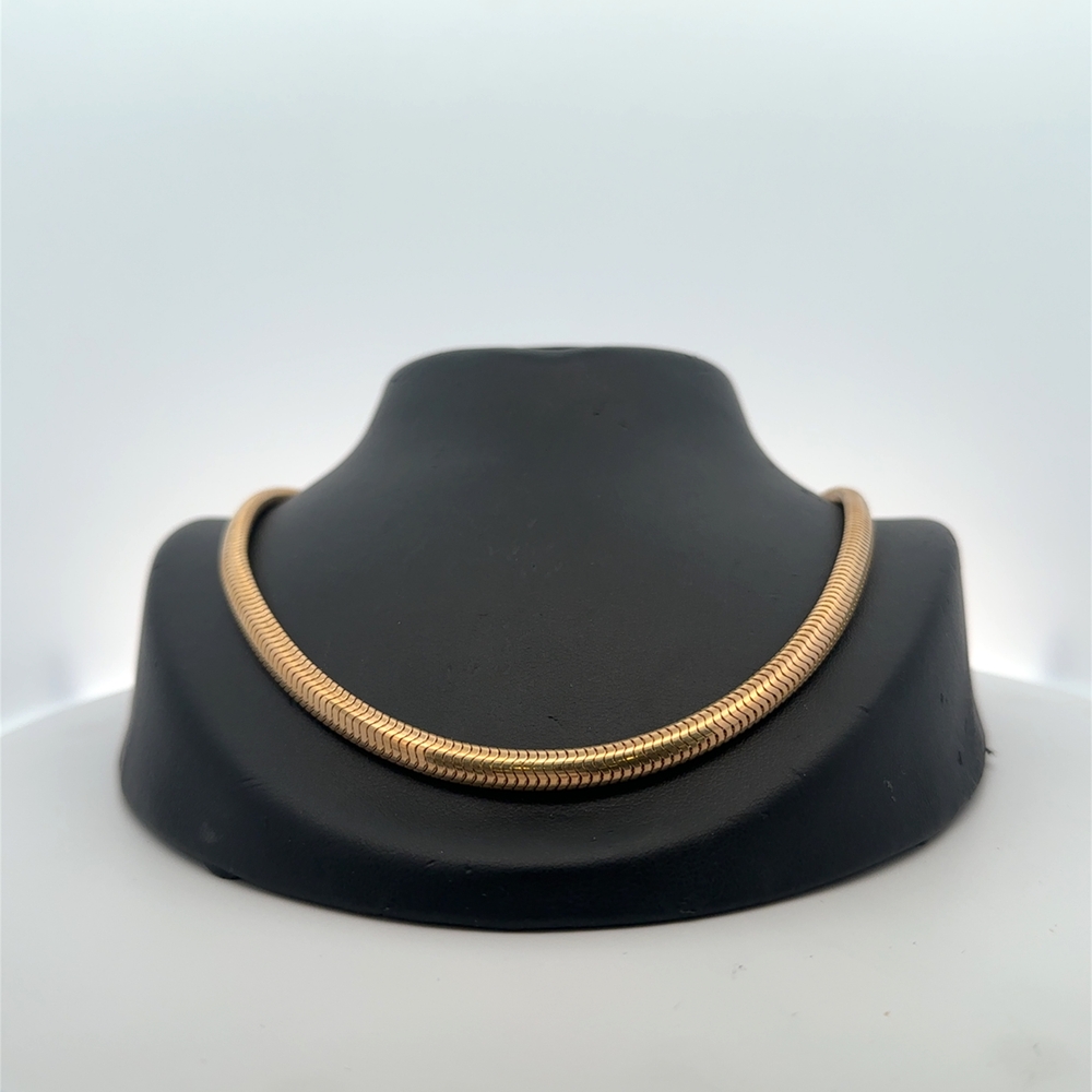 This estate chain measures 15 inches long. It is 14k gold & weighs 38.4 grams. This piece features a box type safety catch.