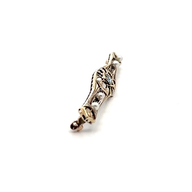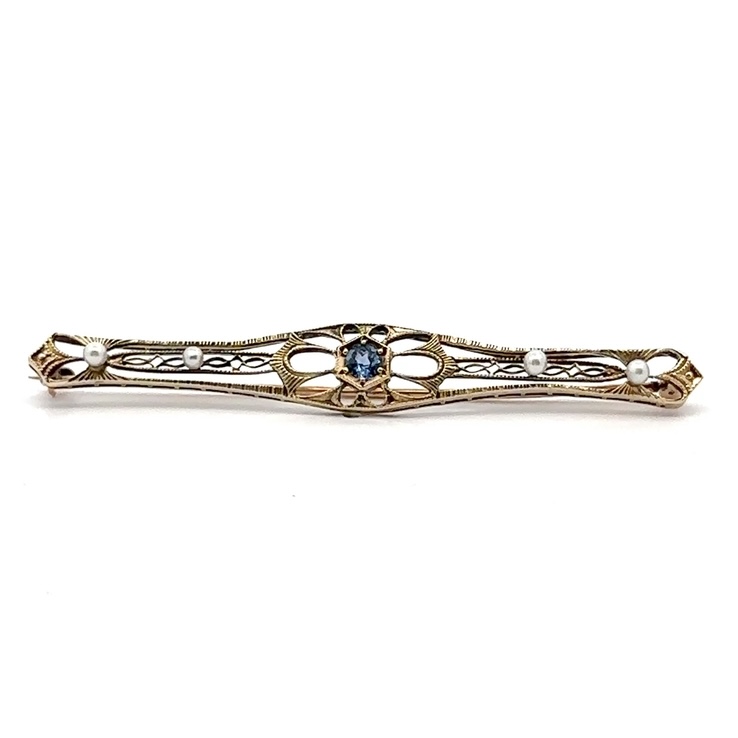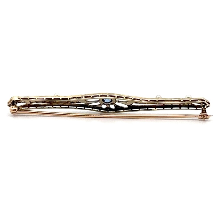 14K Sapphire & Pearl Estate Pin 078268