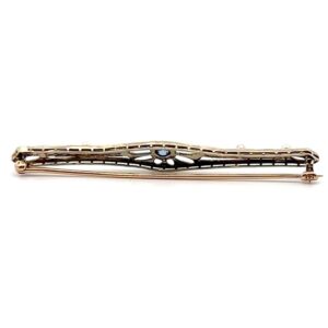This pin features .15ct sapphires and pearls. The pin weighs 3 grams.