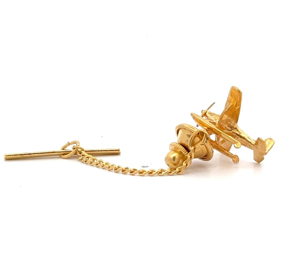This 10k float plane tie tack weighs 2.5 grams and is 14mm tall and 18mm long.
