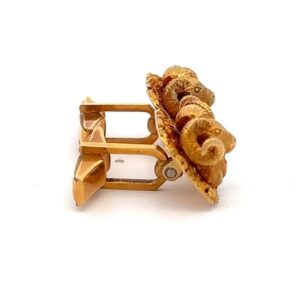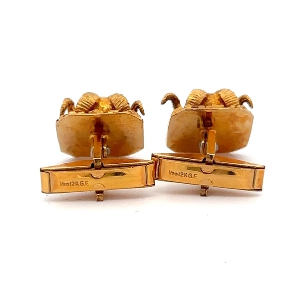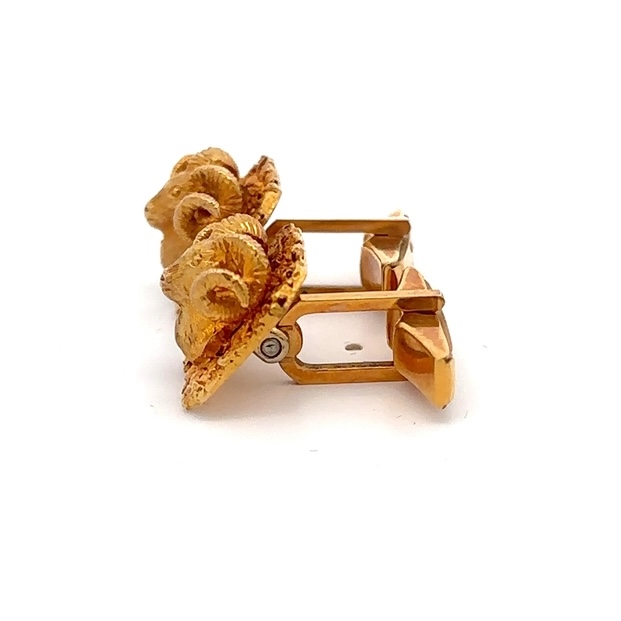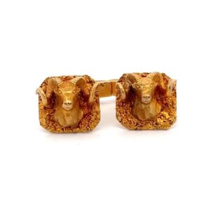These men’s gold nugget cufflinks feature 10k gold rams heads and natural gold nuggets soldered on a 10 karat gold back plate (the cufflink wings are gold filled). The overall weight is 15.3 grams. They are about 15mm X 15mm.