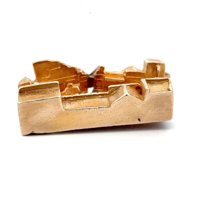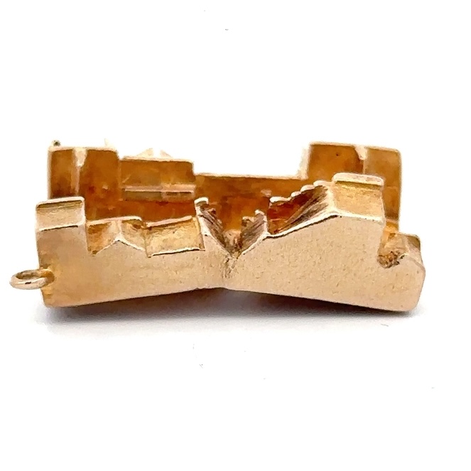 This 10k 1964 earthquake scene of 4th avenue charm weighs 9.8 grams and is 9mm tall and 24mm wide.