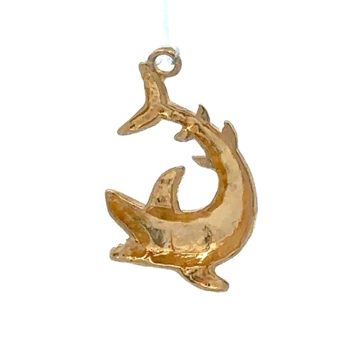 This 14k shark charm weighs 1.1 grams and is 18mm tall and 10mm wide.