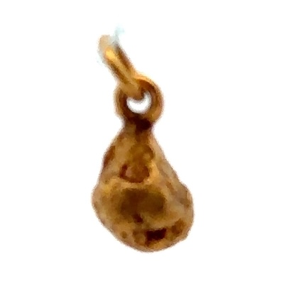 This nugget charm weighs 1.7 grams and is 11mm tall and 3mm wide.