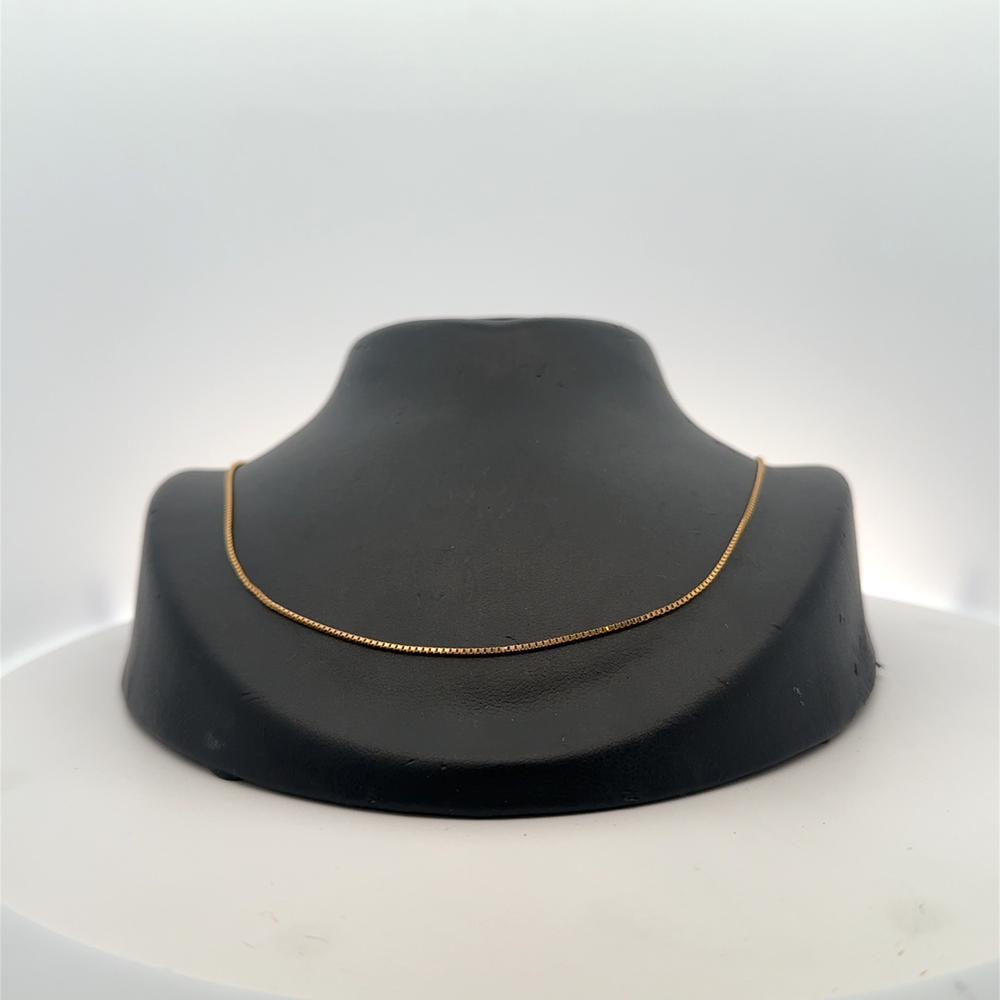 This estate chain measures 30 inches long. It is 10k gold & weighs 3.1 grams. This piece features a spring-ring style clasp.