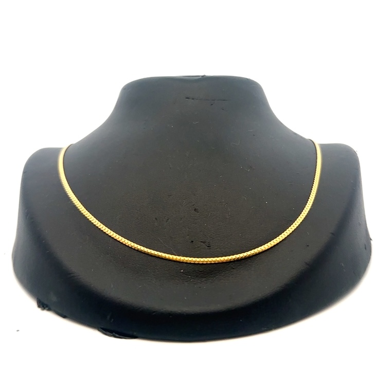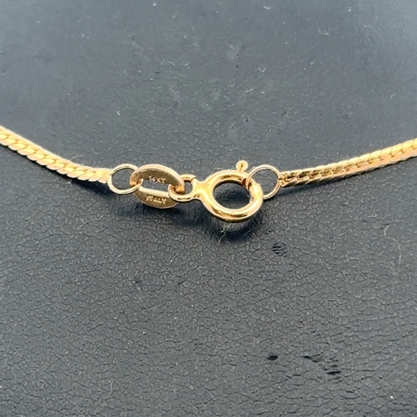 This estate chain measures 17 inches long. It is 14k gold & weighs 3.4 grams. This piece features an O-ring clasp.