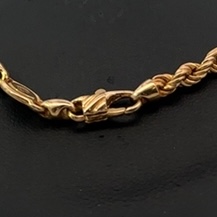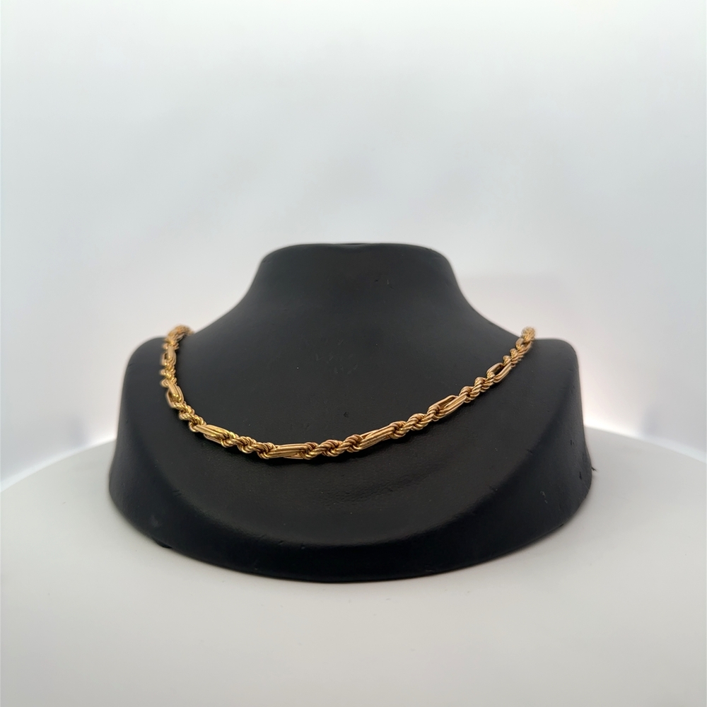 This estate chain measures 18 inches long. It is 14k gold & weighs 12.6 grams. This piece features a lobster claw clasp.