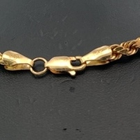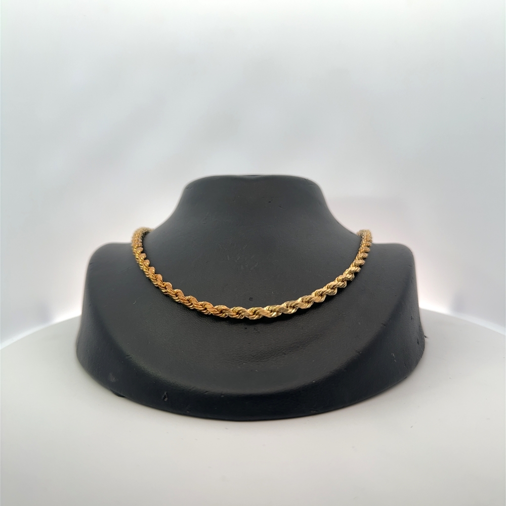 This estate chain measures 20 inches long. It is 14k gold & weighs 9.6 grams. This piece features a lobster claw clasp.