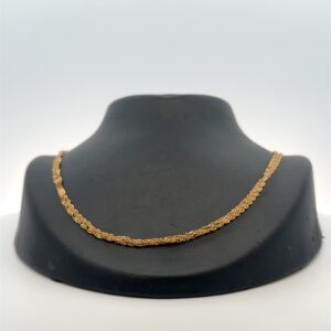 This estate chain measures 20 inches long. It is 14k gold & weighs 4.2 grams. Each strand is about 1mm wide. This piece features a lobster claw clasp safety mechanism.