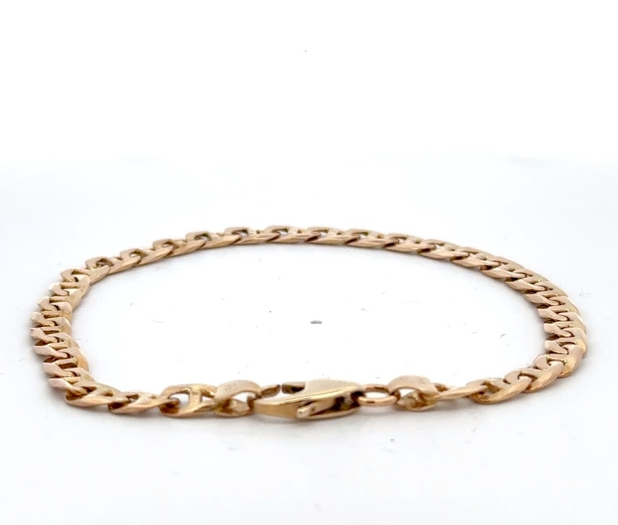 Check out this beautiful estate anchor bracelet. This bracelet is 9″ long and weighs 11.7 grams.