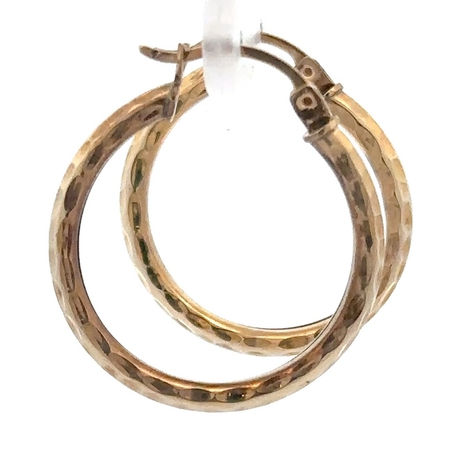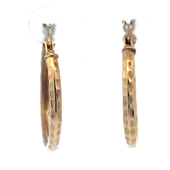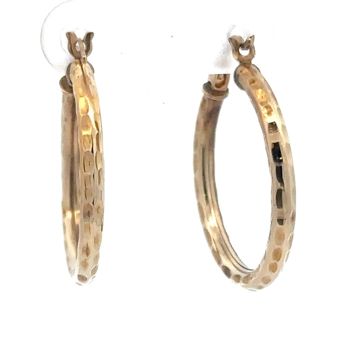 These 10k yellow gold hoop earrings are a beautiful pair to add to your collection. The earrings weigh about 1.9 grams. The earrings measure 22mm tall.