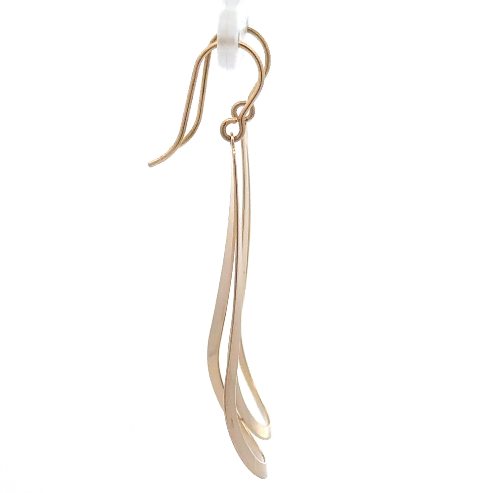 These 14k yellow gold long dangle earrings are a beautiful pair to add to your collection. The earrings weigh about 2.8 grams. The earrings measure 43mm tall.