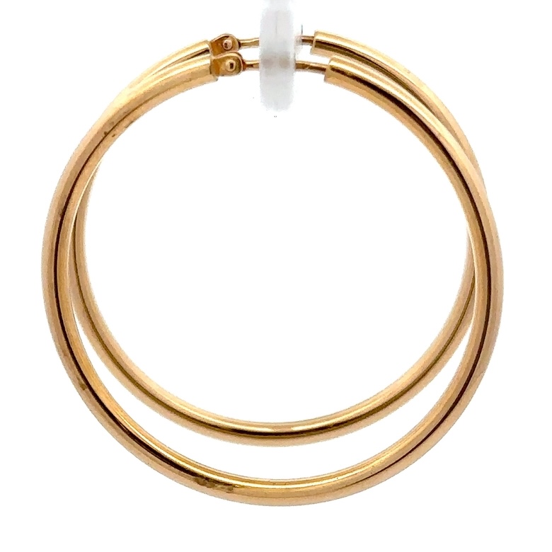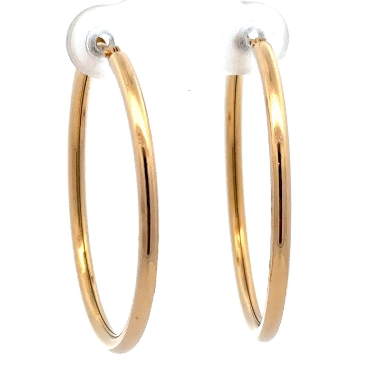 These 18k yellow gold hoop earrings are a beautiful pair to add to your collection. The earrings weigh about 2.1 grams. The earrings measure 31mm tall.
