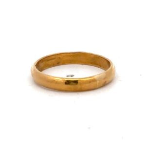 This lady’s estate band is mounted in 2.4 grams of 18k yellow gold. Ring size 4.