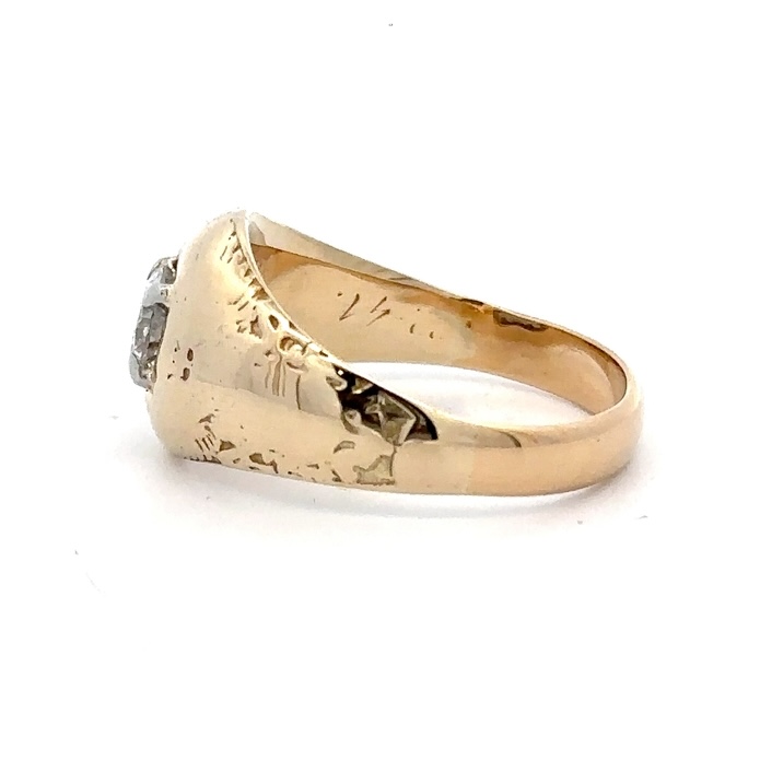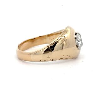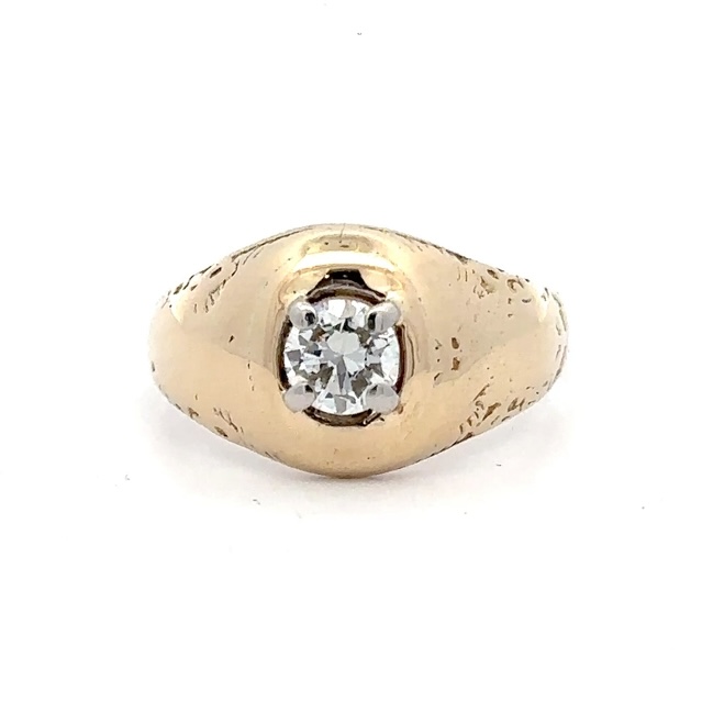 This estate ring features a .55 carat diamond, clarity SI1, and color I. It is mounted in 8.2 grams of 14k yellow gold. Ring size 9.