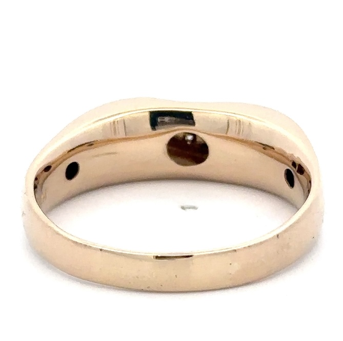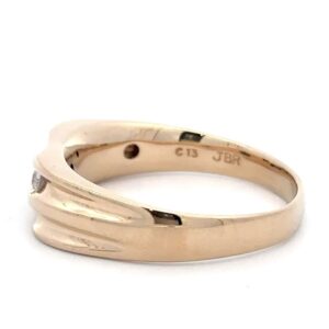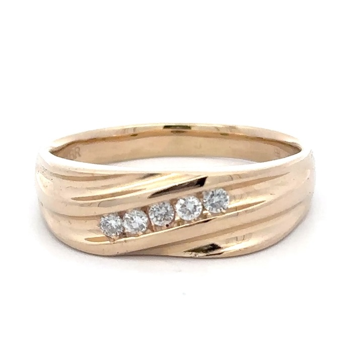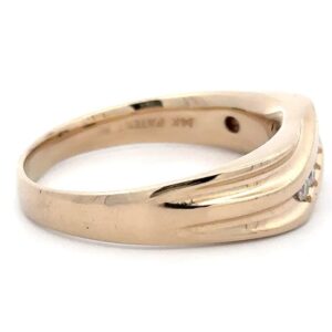 This men’s estate band features .25 carat diamonds, clarity SI, and color G-H-I. It is mounted in 7.8 grams of 14k yellow gold. Ring size 15.