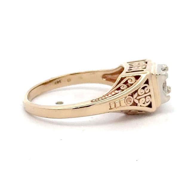 This lady’s estate ring features a .44-carat diamond, clarity I1, and color I. It is mounted in 5.2 grams of 14k yellow gold. Ring size 7.5.