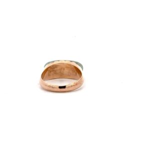 This lady’s estate ring features light green jade. It is mounted in 2.7 grams of 18k yellow gold. Ring size 3 1/2.