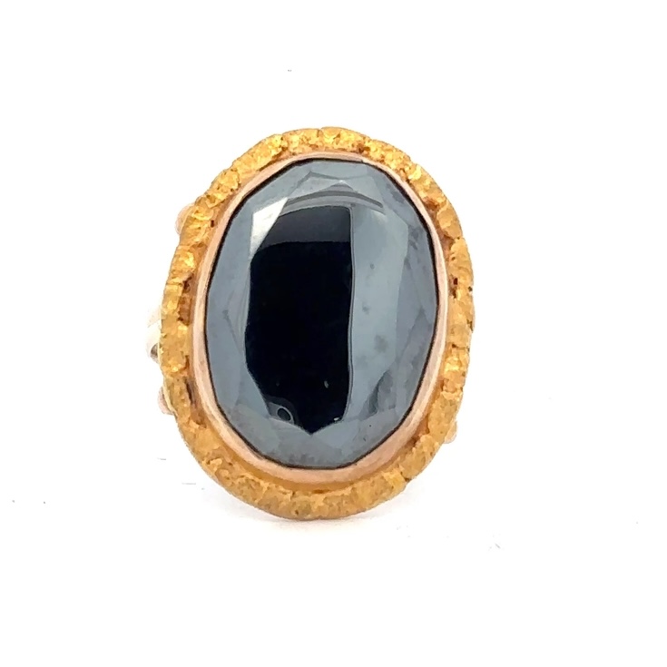 Estate Gold Nugget & Hematite Ring 071597