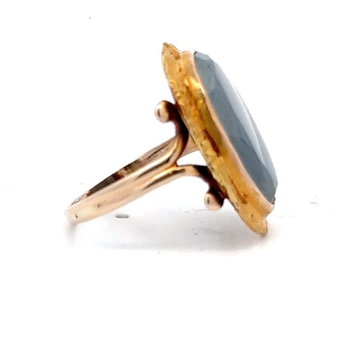 This lady’s estate ring features a hematite, surrounded by Alaskan gold nuggets. It is mounted in 4.6 grams of 14k yellow gold. Ring size 6.5.