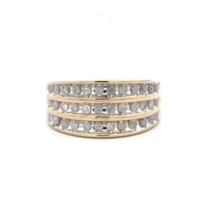 This lady’s estate ring features .50 ct. of diamonds, clarity I3. Mounted in 3.5 grams of 10k yellow gold. Ring size 6 3/4.